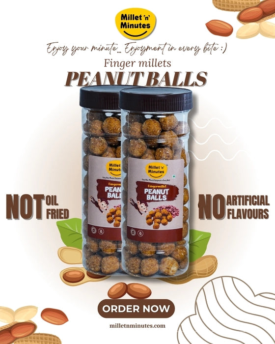 Indulge in the delightful fusion of flavors with our Finger Millet Peanut Balls! These wholesome treats are a nutritious snack option, expertly crafted using the rich, nutty taste of finger millet and the satisfying crunch of roasted peanuts. Packed with essential nutrients, our peanut balls provide a burst of energy that keeps you fueled throughout the day. Perfect for those seeking a healthy yet tasty alternative to traditional snacks, these finger millet peanut balls are ideal for kids and adults alike!