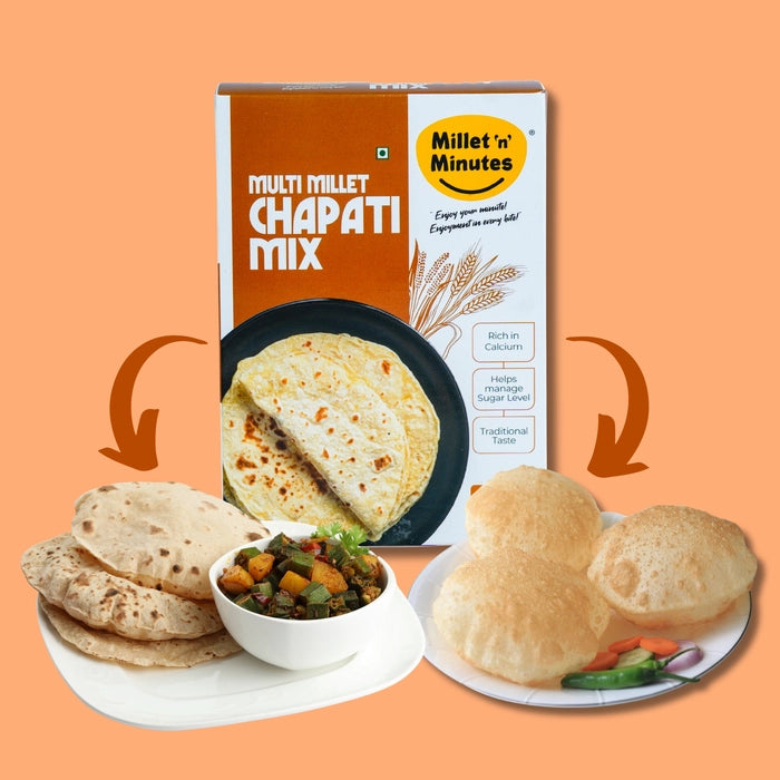 Introducing our Multi Millet Chapathi/Poori Mix – a wholesome blend designed for health-conscious individuals who refuse to compromise on taste! This unique mix combines a variety of nutrient-dense millets, making it easy to whip up fluffy chapathis or crispy pooris that are not only delicious but also packed with goodness. Perfect for families looking to incorporate more whole grains into their meals, this mix offers a hearty flavor and a soft texture that pairs wonderfully with any curry or stew. Elevate your culinary experience while nourishing your body with this versatile staple!